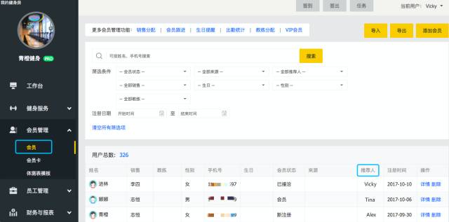 健身房还可通过青橙系统来统计老会员转介绍的用户数量,当介绍的新客到达指定数量时,健身房可提供课程奖励、金额奖励等不同奖励形式给老会员。