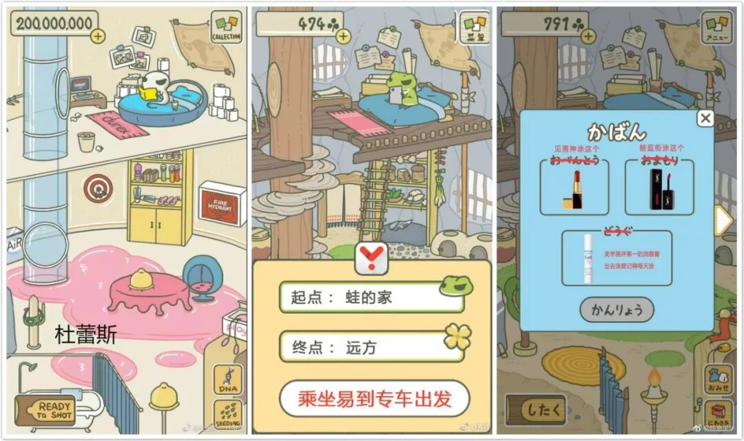 在青蛙旅行的爆点一出,更大品牌嗅觉敏锐纷纷将自家产品与旅行青蛙的场景做结合。适当的借势热点能够门槛更低的获得用户好感及转发。