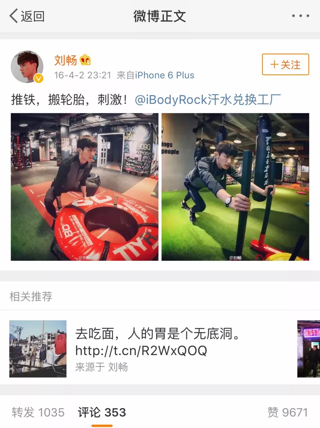 (中国首席男模刘畅到青橙用户iBodyRock场馆健身)